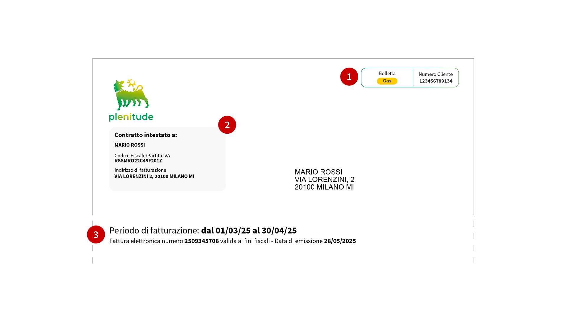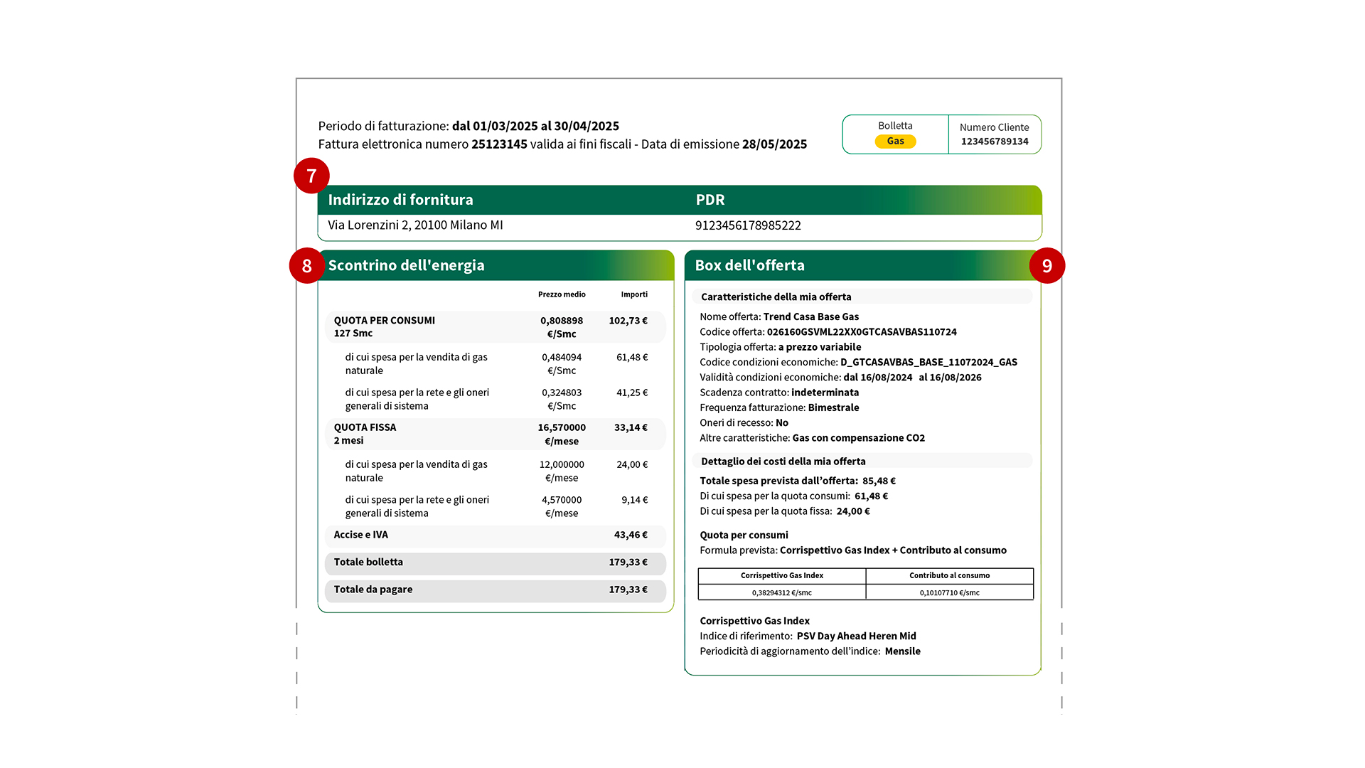 7. Dati identificativi del punto di fornitura, ossia l'indirizzo e il POD o PDR.